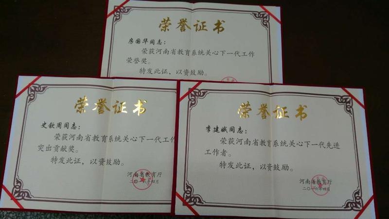 我院三名退休教工获“河南省教育系统关心下一代”个人荣誉称号