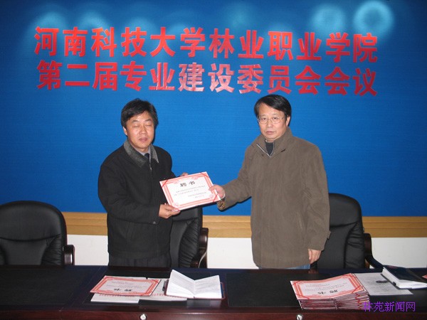 吴院长亲自向 18 位委员颁发了聘书。吴院长要求,新一届专业建设委员会要积极开展调研工作,对学院的专业设置、专业调整、教学改革、教材建设、师资队伍建设、实践教学建设等方面提出方案,为发展决策提供可靠依据。