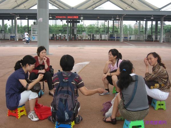 参观世博的第二天下着中雨,为了拿到中国馆的预约票,我们早上四点半起床,在六点之前赶到世博第一道卡,我们到时前面已排很长的队,在此静等了一个多小时,七点放行,此时,无论男女老幼一起向前奔,不想跑的也都被后面的人硬推着跑了,大概狂跑了两千米来到第二道卡,进入蛇形通道继续排队,又等了近两个小时,世博园上午9点才开门,激动人心的时刻到了,我们通过、验票,终于拿到了中国馆的预约票。正在高兴,又被人推,一抬头看到,无数的伞在雨中飞舞,飘向前方约三千米处的日本馆,在蛇形通道不停地走了近两个小时终于进了日本馆参观。从日本馆出来一看,所有馆都排着长长地队,此时要快速的冲到中国馆排队,又要在蛇形通道不停地走近三个小时才能进馆参观,从中国馆出来,就要快速到达四号出口集合。这一天可真是一场体力消耗的硬仗,锻炼全身性的有氧运动,想不瘦身都不行啊!