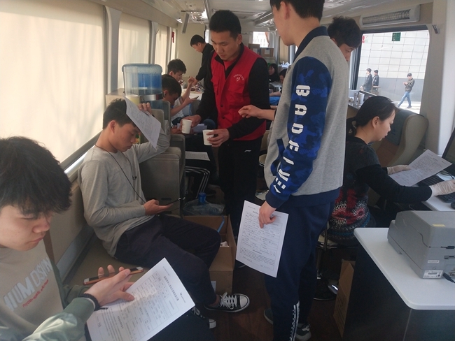 3月20日,我院团委联合洛阳市中心血站,在学院超市门口进行义务献血志愿活动。为期一天的义务献血活动,吸引了广大师生的踊跃参与。