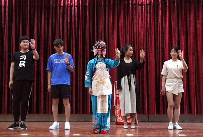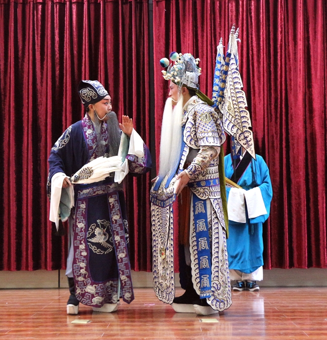 此次活动分为戏曲知识讲座和折子戏演出两个部分,戏曲知识讲座中,主持人结合自身演出经历,为同学们生动讲解了中国戏曲的特征、戏曲行当结构中的角色、戏曲表演功法等戏曲基本知识,同时着重介绍了国家级非物质文化遗产——“越调”的起源、发展、改革、流派及代表剧目。讲座穿插了精彩的越调各流派唱腔展示,形式多样,精彩纷呈,同时还加入了现场互动环节,让师生们在领略戏曲艺术魅力的同时,进一步增进了对中国传统文化的认同感、使命感。