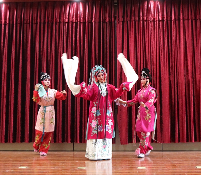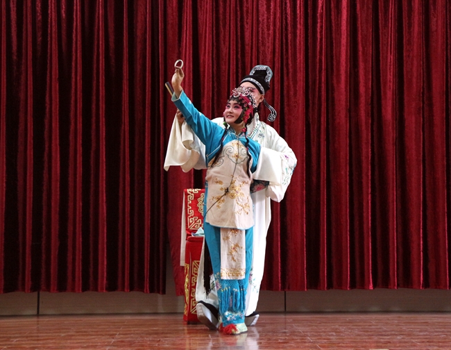 越调折子戏《拾玉镯》、《小乔坐府》和《收姜维》等传统剧目选段。艺术家们时而悠扬、时而铿锵的唱腔,时而优雅、时而威武的身段将一个个是与非、善与恶、忠与奸的故事演绎的惟妙惟肖,生动传递了中国人民讲仁爱、重民本、守诚信、崇正义、尚和平的崇高价值追求,精彩的演出不时博得现场观众阵阵喝彩与掌声。