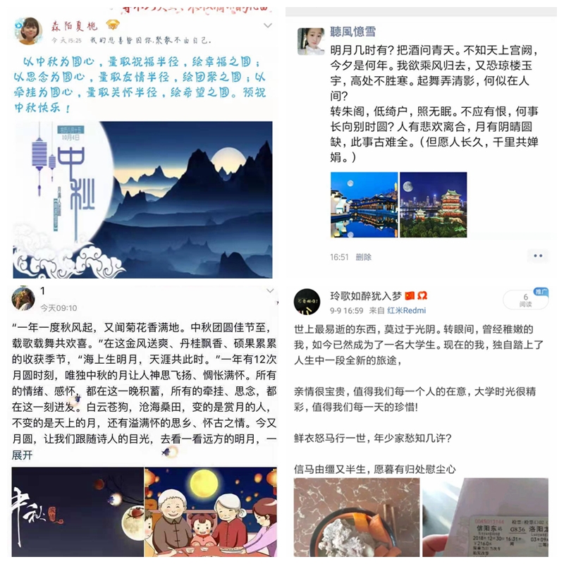 在线上,师生们纷纷通过微信、微博、qq在网上晒出自己的家书,通过网络向自己的家人、亲友传递节日问候,表达思念之情。