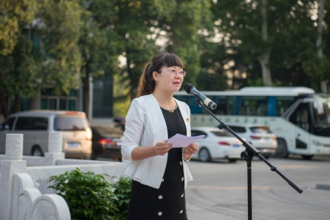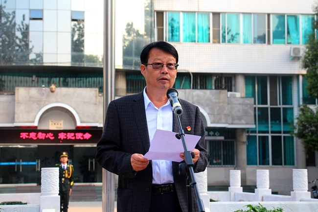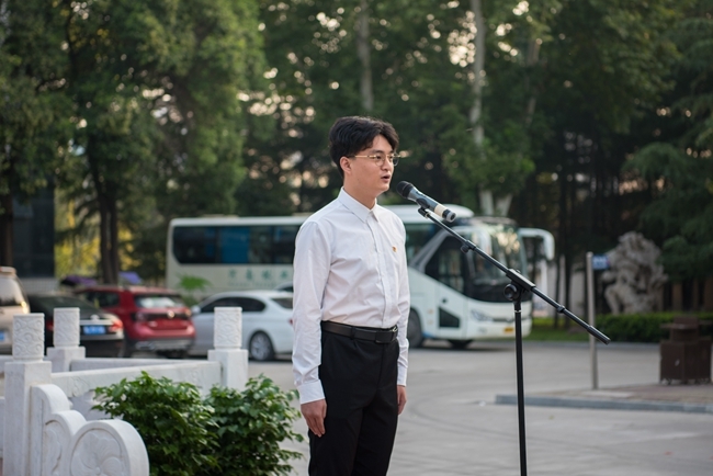 学院党委书记吴国新在国旗下发表讲话。吴书记从祖国70年沧桑巨变到“四个全面”“五位一体”的现代化强国战略布局,细数70年来祖国发展的伟大成就,勉励青年学生“不忘初心、牢记使命,胸怀理想、心系家国”,既要“仰望星空”,又要“脚踏实地”;既要坚定理想信念、练就过硬本领,又要勇于创新创造、锤炼高尚品格;与祖国同呼吸,与时代共命运,实现自己的人生理想。