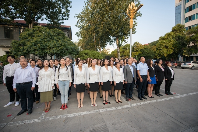 9月23日早上7点,我院在办公楼广场隆重举行“庆祝中华人民共和国成立70周年”升国旗仪式。学院党委书记吴国新、院长宋宏伟、副院长刘宗利、路买林出席,学院全体教职员工和全体在校学生参加了本次仪式。