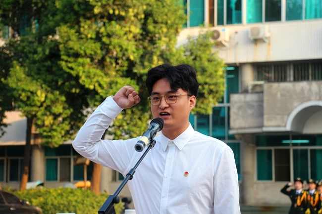 奏唱完毕后,学生代表胡道霖进行了国旗下演讲,他以《国旗,我来守护你》为题,呼唤当代青年与祖国共奋进,做有理想、有担当的新时代好青年。