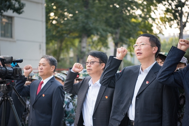 随后,全体师生在国旗下庄严宣誓,深情告白祖国:“永远热爱中国共产党,永远热爱伟大祖国!”