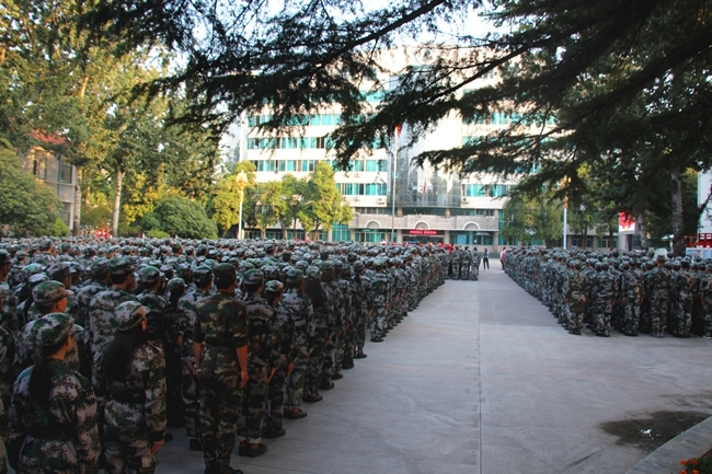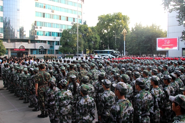 广场上,122名团学干部身着青年志愿者红马甲,在国旗台前排成“70”字样,激情满怀,意气风发,为祖国庆生;30个新生军训中队的近2500名学生英姿飒爽,用饱满的热情,昂扬的斗志表达了对伟大祖国的衷心爱戴和美好祝愿。