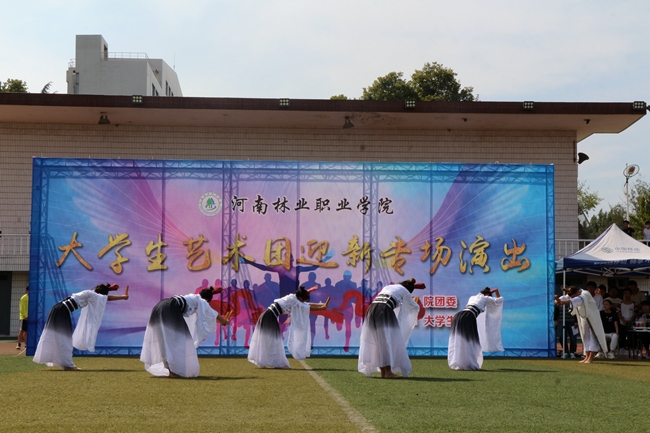 9月24日下午,我院大学生艺术团迎新专场演出在运动场盛大举行。演出由院团委组织,大学生艺术团主办,节目包含古典舞、街舞、歌曲联唱、器乐合奏等多种类型,充分展现了我院学生多才多艺、朝气蓬勃的青春正能量,为正在军训的19级新生带来了一场精彩纷呈的视听盛宴。整场演出既有《BAE》等强劲有力的舞曲,又有《浏阳河》等婉转抒情的民族音乐;既有《孔子箴言》等身姿婀娜的古典韵律,又有《最近》等感人至深的动情演唱。率性洒脱的歌声,唯美流畅的舞姿,还有精妙绝伦的器乐演奏,博得了场下观众一阵狂热痴迷的掌声,现场气氛热情高涨。