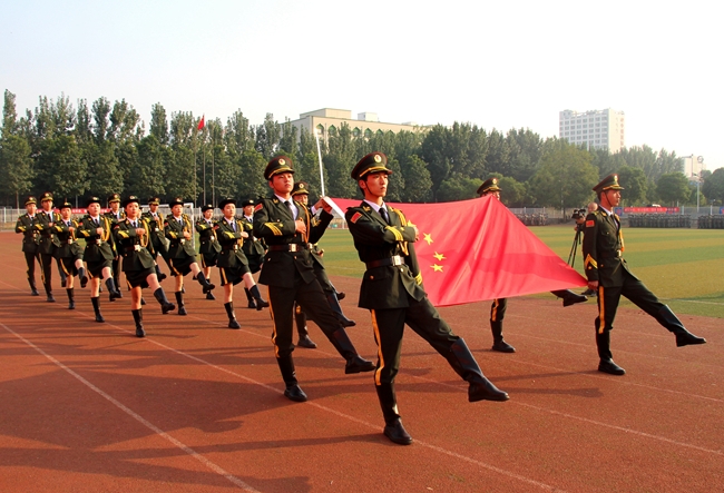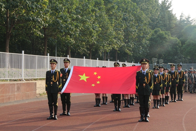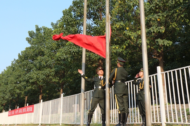 大会在庄严的升国旗仪式中拉开帷幕,党委书记吴国新宣布会操正式开始。