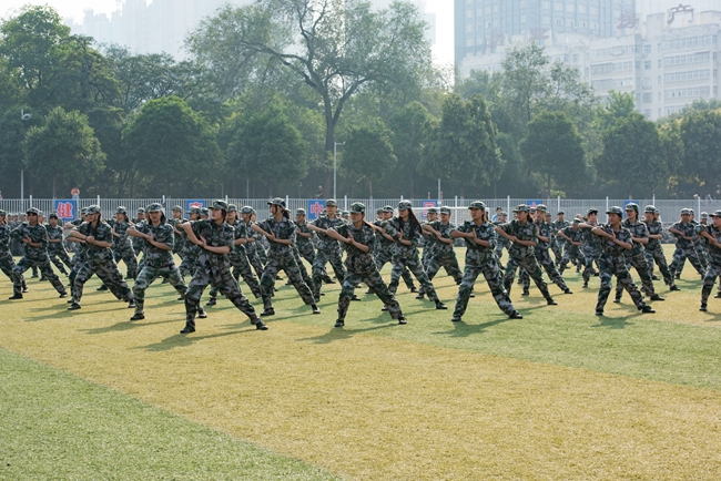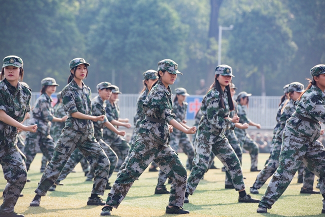 伴随着雄壮的解放军进行曲,30个中队顺次入场,喊着嘹亮的口号、迈着刚劲有力的步伐依次通过主席台接受检阅,同学们士气高昂、军姿挺拔、步伐铿锵、队列整齐,展示了林职院学子的精神风貌,赢得了全场热烈的掌声。分列式结束后,部分中队进行了军训操课项目展示、军体拳表演和擒敌拳表演。参训教官和军体拳中队分别进行了精彩的军体拳表演,现场掌声不断。