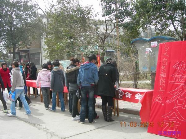 社团联合会组织开展义务劳动 来源:团委 发布时间:2010-03-12 16:51:34 浏览次数: 次 【字体:小 大】 为弘扬雷锋精神,提倡文明新风,构建和谐校园,依据院团委 “学雷锋 讲文明 促和谐”系列活动方案的活动要求,3月11日中午,社团联合会组织动员全院各社团成员在2号公寓前进行义务劳动,将2号公寓楼前面被人破坏的草坪进行翻土,为学校统一栽种新草坪提供支持。 (照片提供:团委) 分享到: 【打印正文】