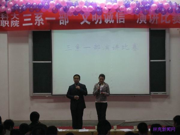 院团委举办“文明诚信”演讲比赛 来源:团委 发布时间:2010-04-21 17:36:23 浏览次数: 次 【字体:小 大】 4月19日晚,由院团委主办,三系一部团总支共同承办的以“文明诚信”为主题的演讲比赛决赛在西阶进行。语文教研组段守顺老师、园林系赵宏伟老师、基础部马建国老师、森环系时军霞老师、信工系赵洁老师及各院系学生干部也应邀来到比赛现场。 本次的参赛选手可谓是“过五关、斩六将”层层选拔出来的,他们在比赛中发挥淋漓尽致,演讲中时而高亢激昂,时而绵绵细雨,使得同学们沉醉于其中。最后由森环系生技09-2班的付真真同学摘得桂冠。 (照片提供:姚海雷) 分享到: 【打印正文】