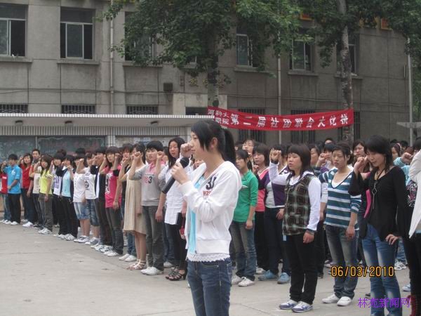 54早上六点四十分,由团委举办的入团积极分子宣誓暨老团员重温誓词活动在院广场举行。参加此次活动的包括267名入团积极分子、09级所有的团员和08级团委委员和各系部团总支委员。