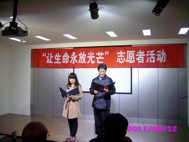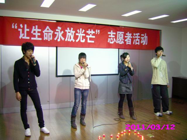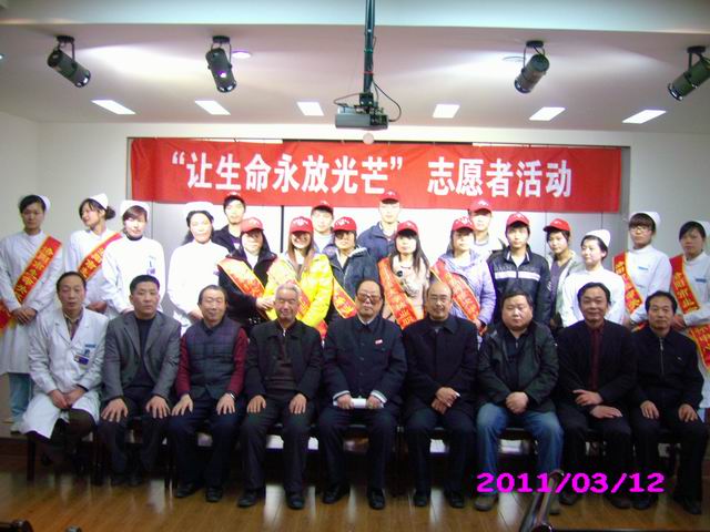 为回顾生命关怀中心成立一年来青年志愿者活动,庆祝洛阳商业职工医院成为中国生命关怀协会会员单位,并积极响应洛阳商业职工医院向全市高校推广的青年志愿活动,2011年3月12日下午2:30,我院志愿者参加了洛阳商业职工医院举办的“让生命永放光芒”活动。