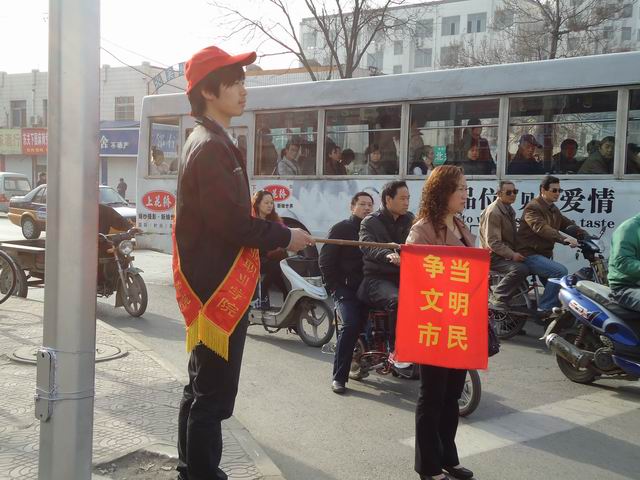 我校志愿者参加交通协管志愿服务 来源:团委 发布时间:2011-04-12 08:15:50 浏览次数: 次 【字体:小 大】 为了配合第29届洛阳牡丹文化节的志愿服务,4月9号上8:00至12:00在瀍河区新街和环城北路我院志愿者进行了交通协管工作。志愿者们顶着烈日,忍着酷晒,站在路口协助交通警察管理马路上的秩序,尽力不让行人闯红灯,遇到行人不听劝告的,志愿者们也能耐下心来说道理。遇到问路的人,他们能够尽己所能得耐心指路。通过本次活动,队员们都了解到作为一个交警的责任和辛劳,同时也了解到作为一个洛阳市市民,应该知法守法,为建设美好洛阳贡献自己的力量。 (照片提供:姚海雷) 分享到: 【打印正文】