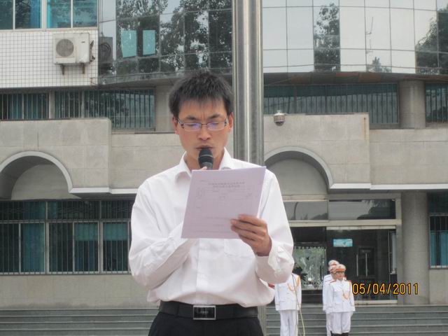 五月四日早上6点50分,在学院办公楼前广场,院团委举行了庄严的升旗仪式。此次升旗仪式主要是为了纪念“五四”运动92周年,同时,在此次升旗仪式上,院团委副书记姚海雷宣读了2011年度新入团员名单。参加此次升旗仪式的同学由新入团员和2010级全体团员。