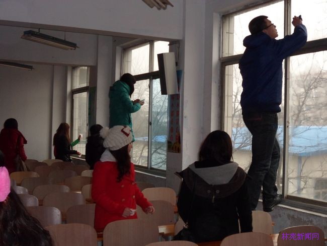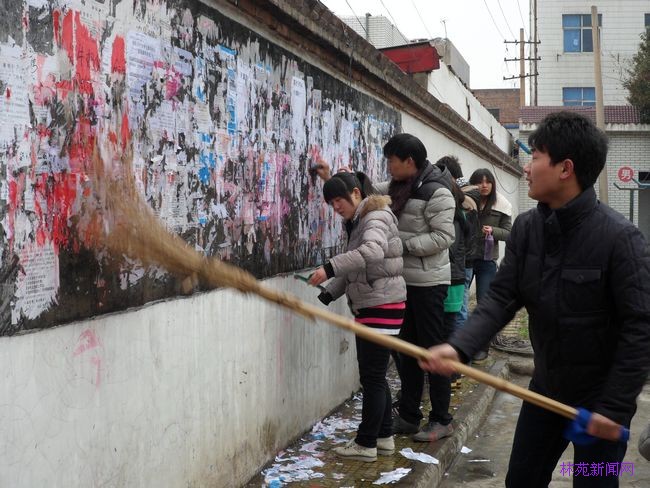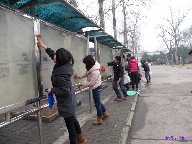 为弘扬雷锋精神,院团委组织全院同学开展了“学雷锋 清洁校园”活动。33日早上840,由院团委带队,各系部积极参与,对全校所有教室窗户及宣传栏、路牌、旗杆等校内公共设施进行了彻底打扫。在同学们积极清扫的同时,久未放晴的天空飘起了雪花,寒风吹来,大家的手冻得通红,但是恶劣的天气并没有影响同学们劳动的热情。每个人都在认真地打扫着,脸上洋溢着学雷锋、参与志愿劳动的快乐。这次活动充分展现了我院学生不怕吃苦、同心协力为学校做贡献的雷锋精神。