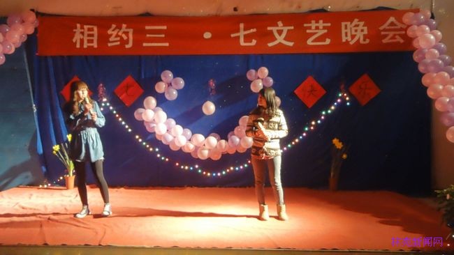 为庆祝3月7日女生节。晚上六点,充满女生活泼气息的“相约三·七”联欢晚会在学生活动中心举行。学生处处长姚海雷、学生处副处长刘艳花、团委副书记马丹丹及王曼、王佳新等教师到场。