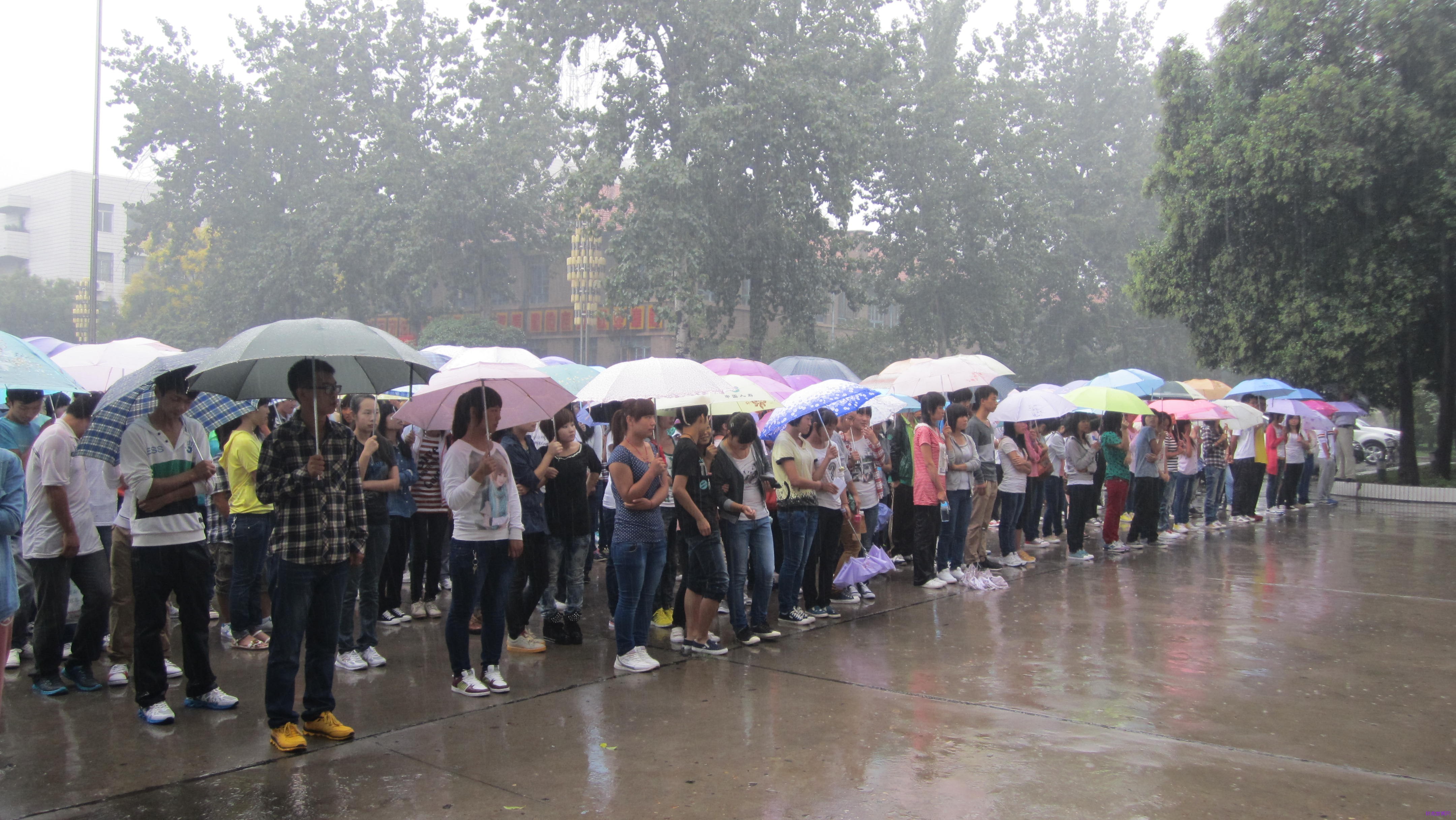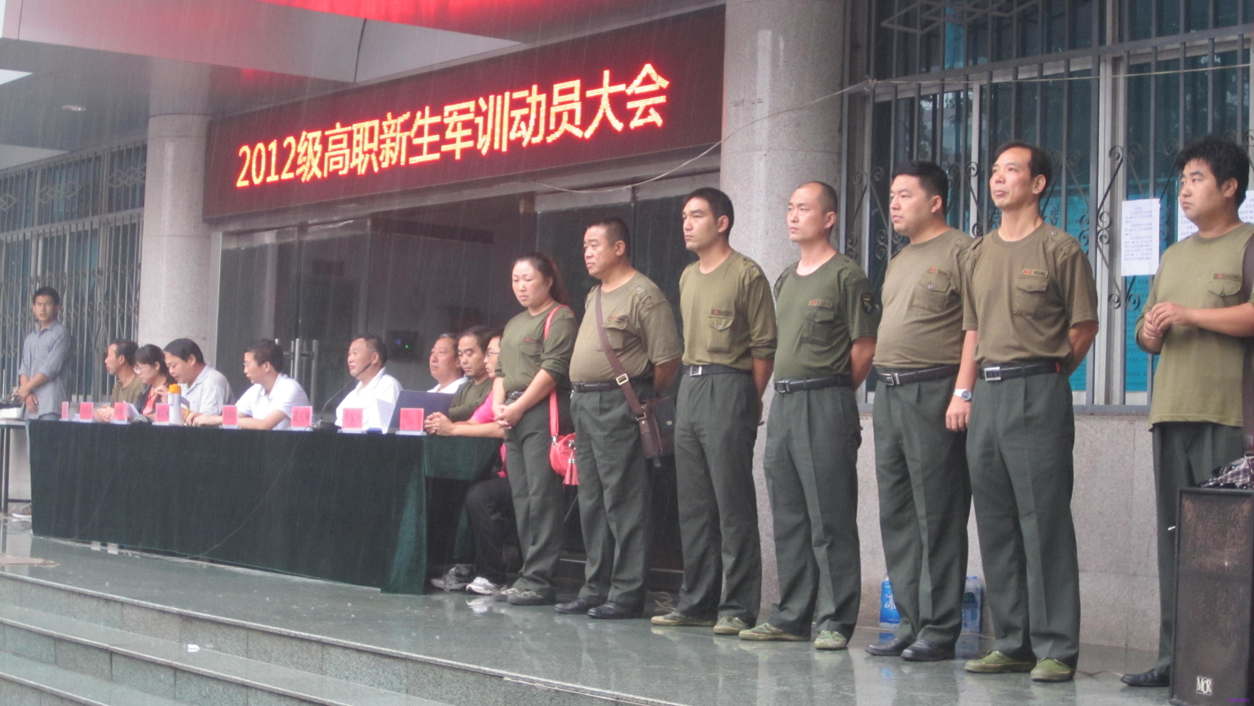 911上午8点半,我院2012级高职新生军训动员大会在院广场如期举行。雨下的正紧,但这丝毫没有影响广大学生参加军训的决心。院党委副书记房国华、副院长刘宗利、副院长路买林、院长助理刘耀玺出席大会,刘助理在会上作动员讲话。刘助理首先代表全校师生对顺利进入我校的新同学表示欢迎和祝贺,对军训教官表示感谢,同时对全体参训同学提出三点要求:第一,加强组织纪律性,一切行动听指挥;第二,不怕困难,刻苦训练;第三,要自始至终参加各项规定项目的操练,争做军训优秀集体,争当先进个人