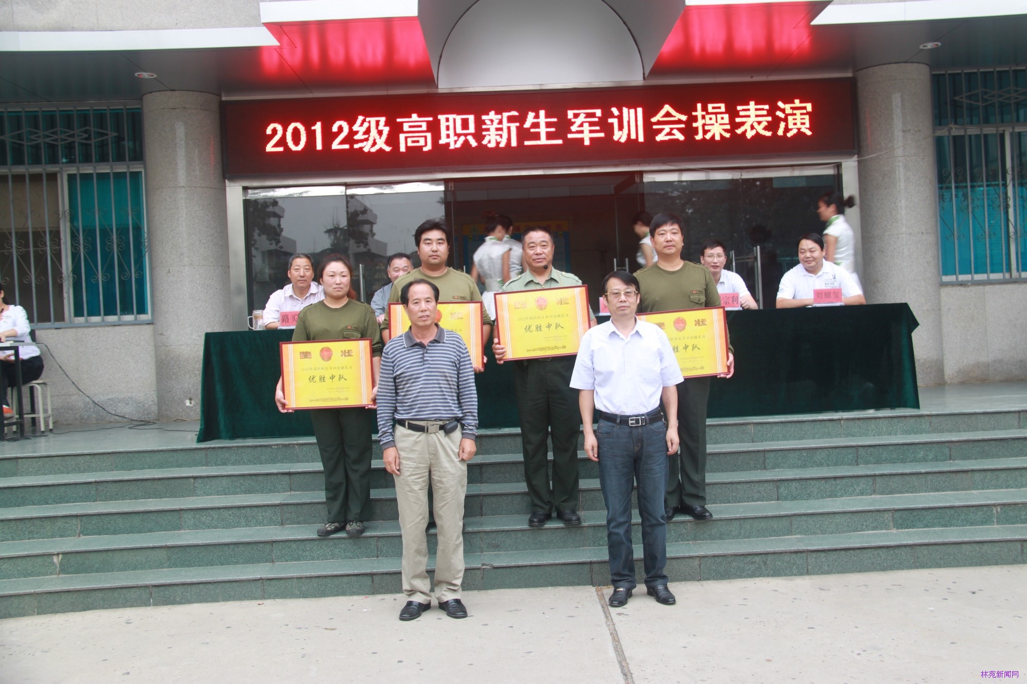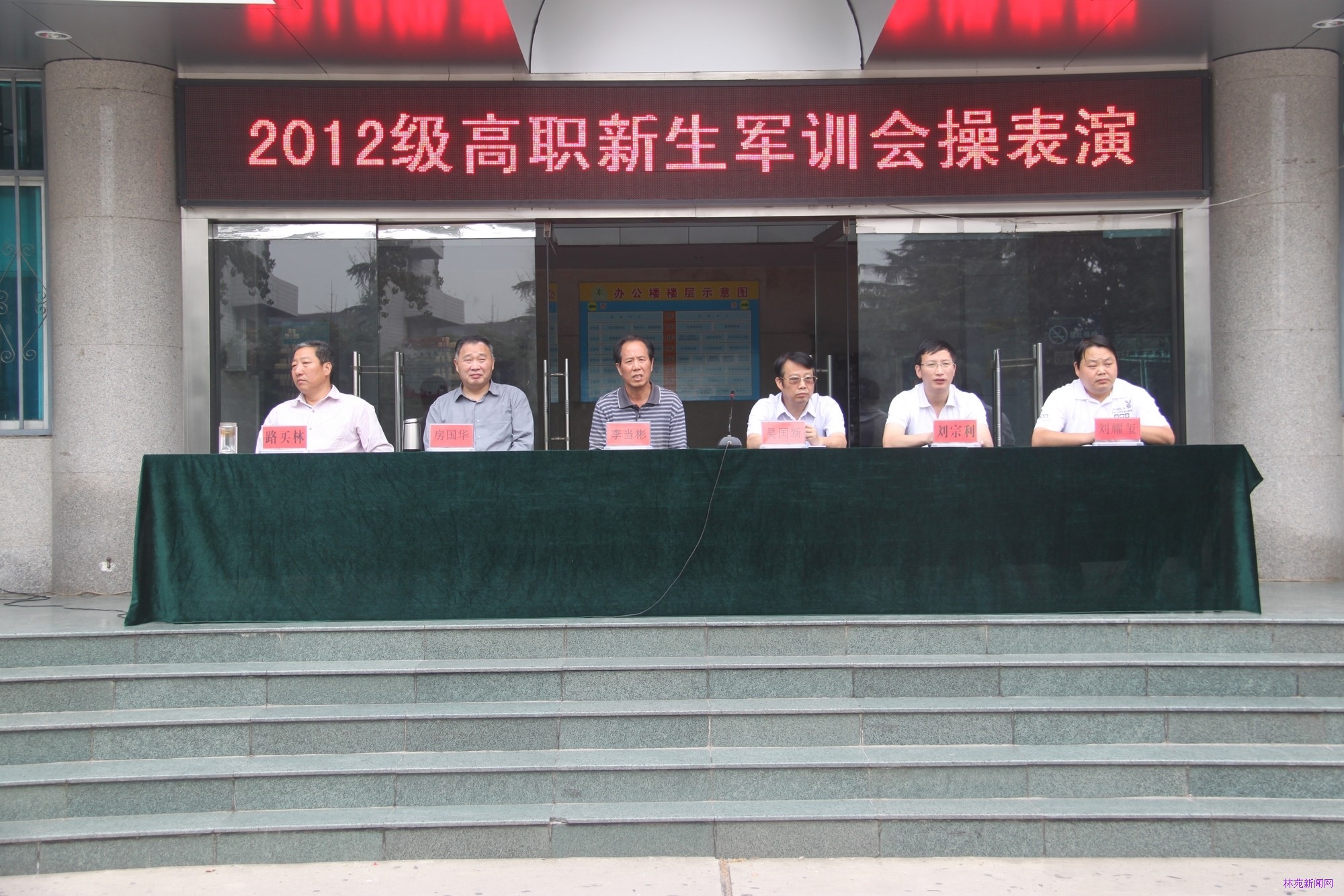9月21日上午,我院2012级高职新生军训会操表演在办公楼前广场隆重举行。出席观看会操表演的学院领导有党委书记李当彬、院长吴国新、院党委副书记房国华、副院长刘宗利、副院长路买林、院长助理刘耀玺。工会、教务、学生处、团委及四系一部主要负责人担任评委。