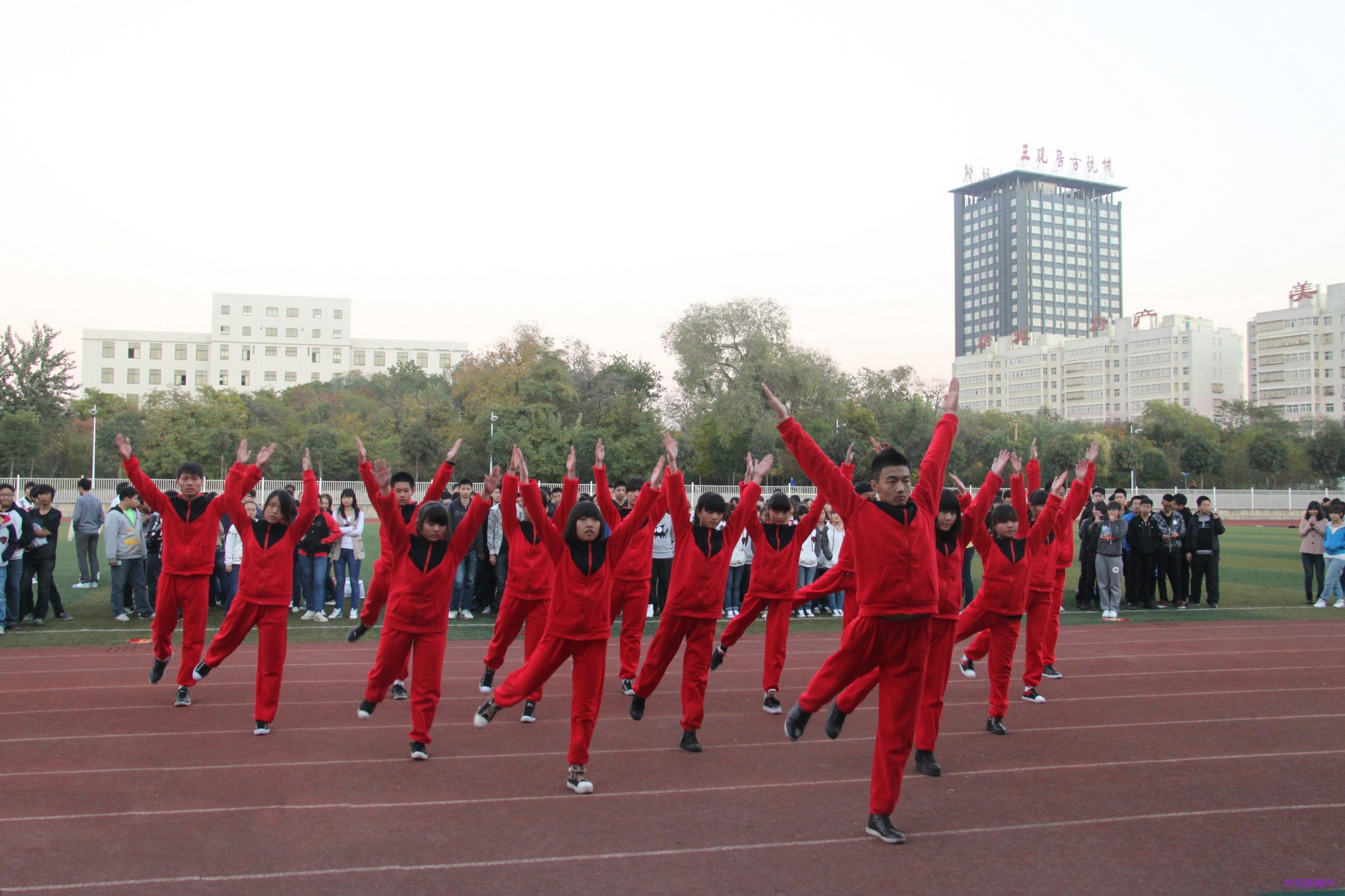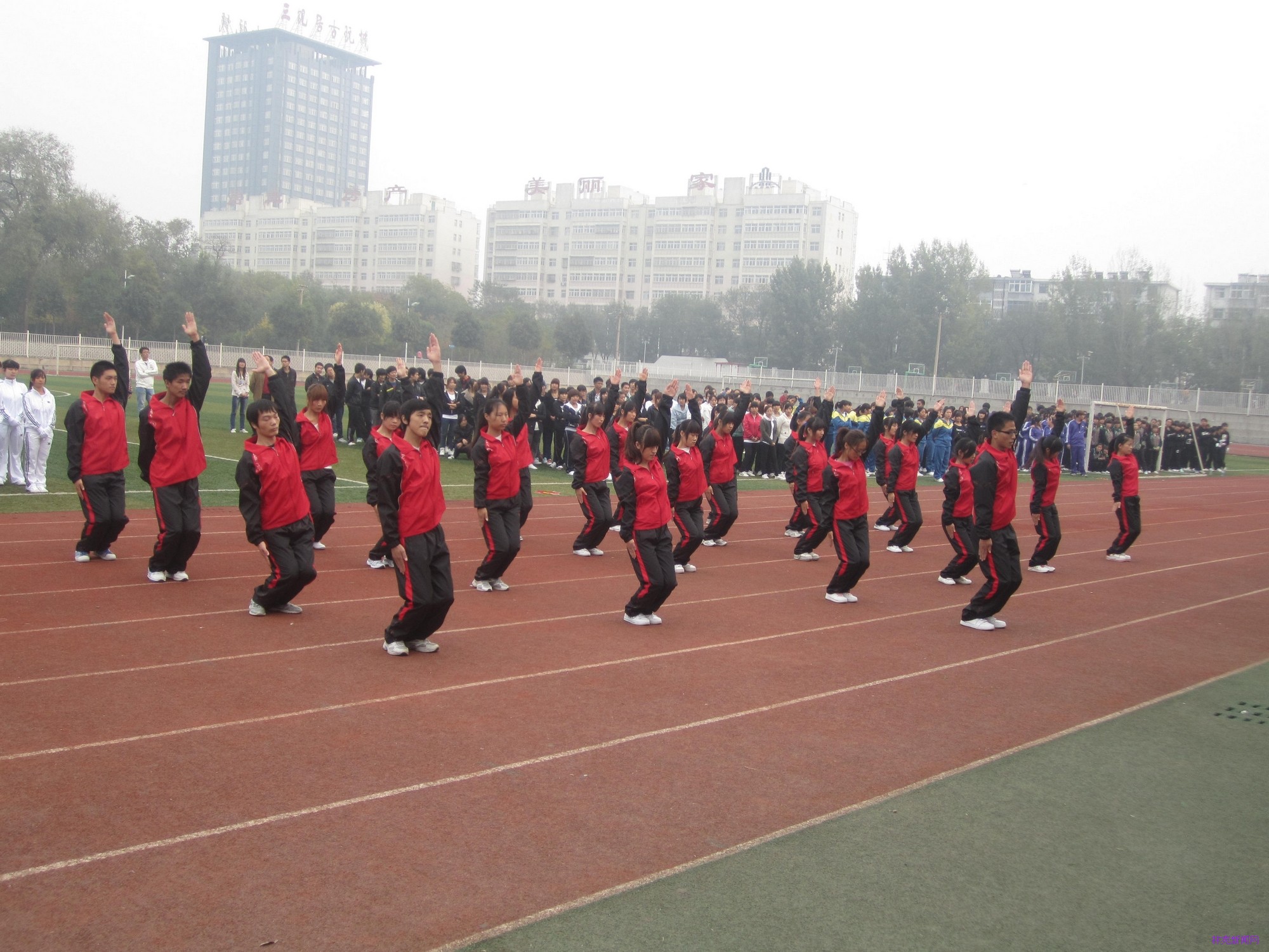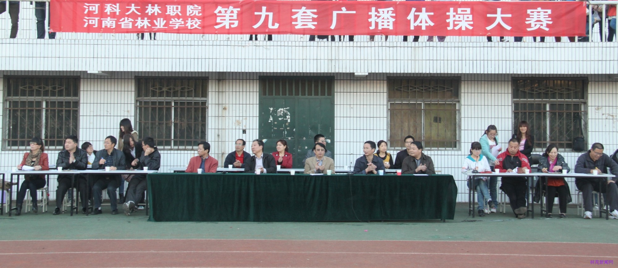 10月29日下午3点,我院第九套广播体操大赛在运动场隆重举行。学院院长吴国新、院党委副书记房国华、副院长刘宗利、副院长路买林、院长助理刘耀玺、院长助理葛祖鸣以及学生处、四系一部的主要领导出席参加了此次大赛。教科研督导处处长姚方、工会主席郭志强、人事处正科级协理员田爱琴、学生处处长姚海雷、院团委副书记马丹丹以及体育教研室李豫、薛曙东、席瓅等老师担任了评委。