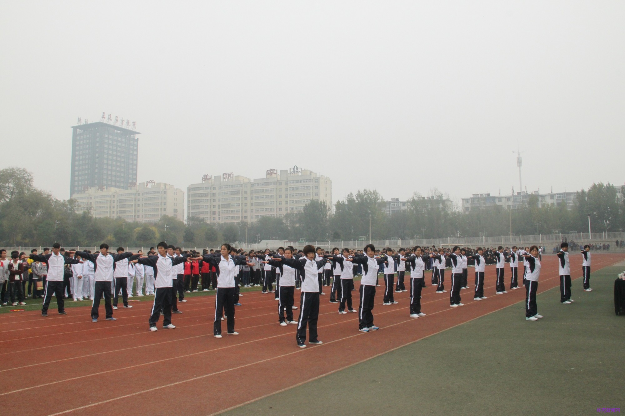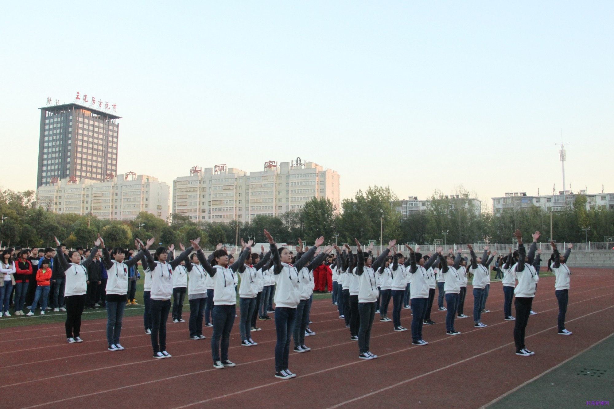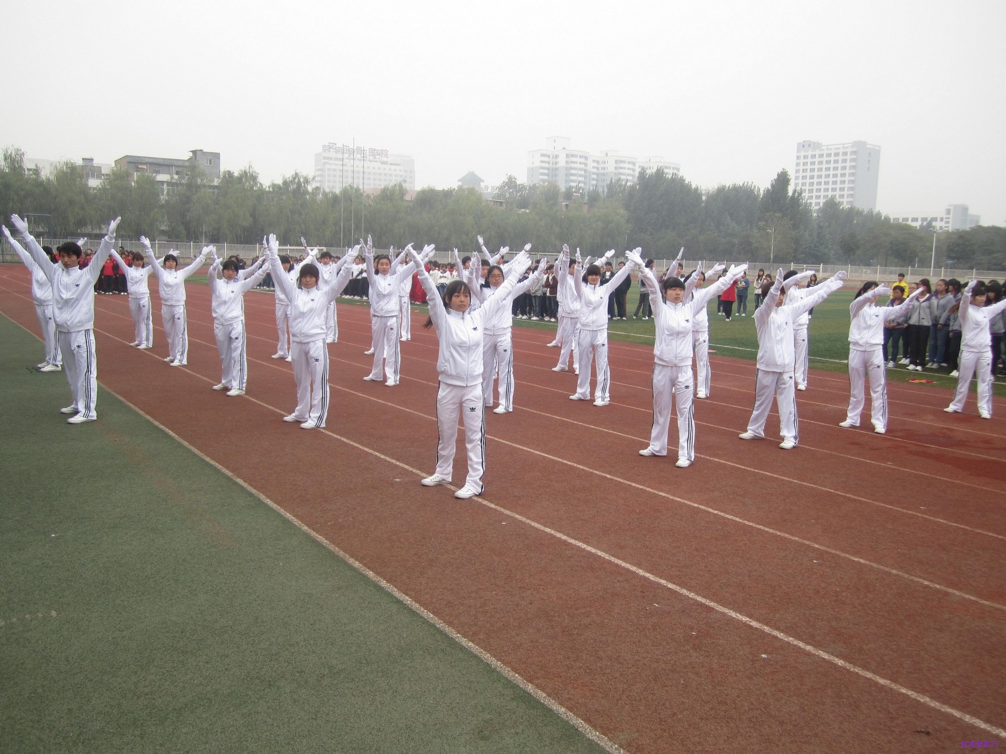 10月29日下午3点,我院第九套广播体操大赛在运动场隆重举行。学院院长吴国新、院党委副书记房国华、副院长刘宗利、副院长路买林、院长助理刘耀玺、院长助理葛祖鸣以及学生处、四系一部的主要领导出席参加了此次大赛。教科研督导处处长姚方、工会主席郭志强、人事处正科级协理员田爱琴、学生处处长姚海雷、院团委副书记马丹丹以及体育教研室李豫、薛曙东、席瓅等老师担任了评委。
