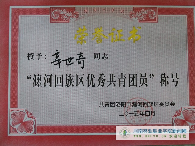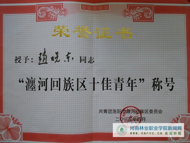 我院师生受共青团瀍河回族区委表彰 来源:团委 发布时间:2015-05-08 17:18:07 浏览次数: 次 【字体:小 大】 近日,共青团瀍河回族区委召开五四表彰大会,表彰瀍河区2014年度先进集体和个人。我院教师赵晓东被授予“瀍河回族区十佳青年”荣誉称号;王涵、毛肖迪、牛明坤、刘洋、刘茜、刘瑗瑗、刘明杨、李光辉、李梦洁、辛世奇、赵满辰、苗成普、郝文等十三名学生被授予“瀍河回族区优秀共青团员”荣誉称号。 分享到: 【打印正文】