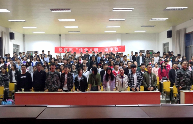 9月19日晚,经贸系团总支在东阶梯教室开展“传承文明 诵中秋”诗会。“海上生明月,天涯共此时。”作为文化基因的纽带,家国情怀的相承,中秋承载着深厚的家国情怀。诗会上分享了李白的《月下独酌》、米芾的《中秋登楼望月》等经典诗词,诗会在所有同学的集体诵读《水调歌头•明月几时有》中落下帷幕。