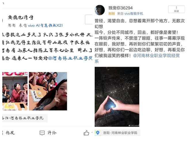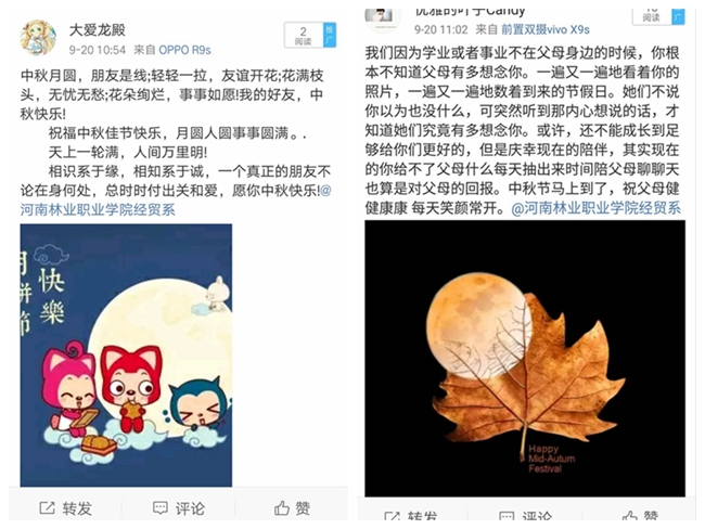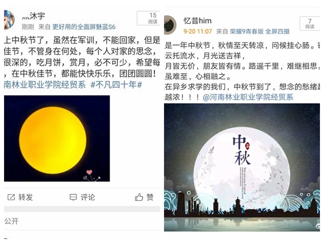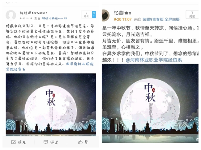 在线上,师生们纷纷通过微信、微博、qq在网上晒出自己的家书,通过网络向自己的家人、亲友传递节日问候,表达思念之情。