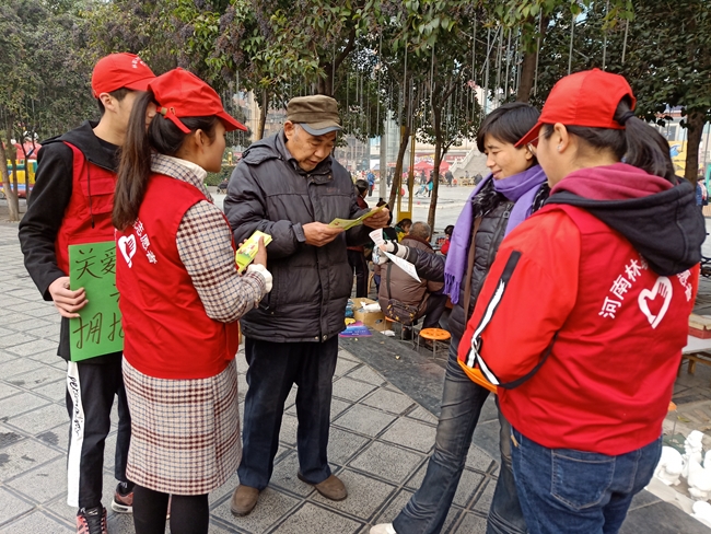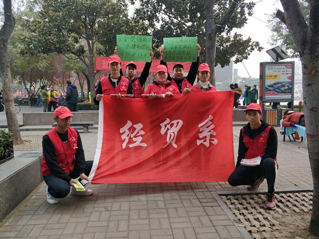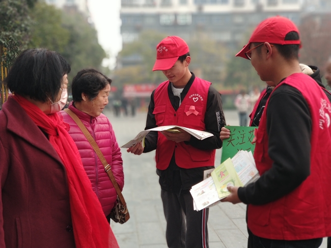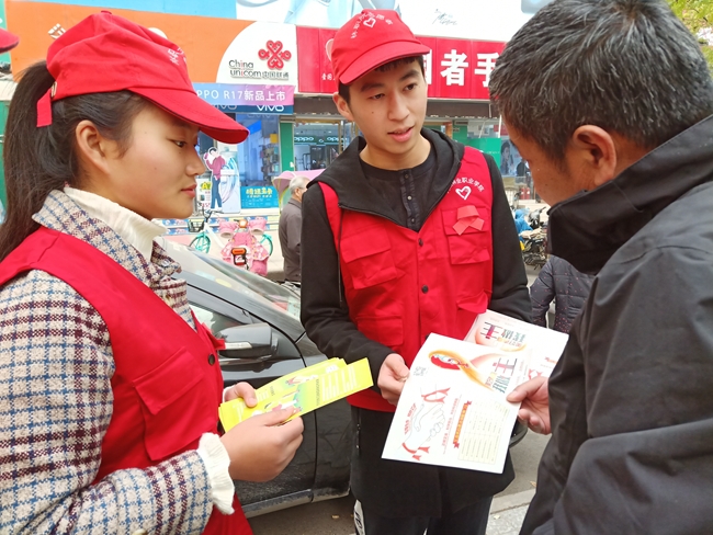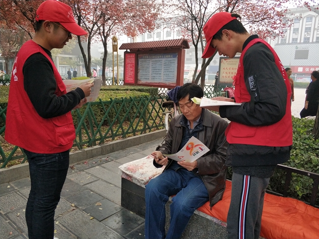 12月1日是第31个世界艾滋病日 ,经贸系团总支组织志愿者开展“拥抱爱,了解艾,推开艾”防艾宣传志愿服务活动。志愿者们来到老城区青年宫广场为过往市民发放防艾宣传资料。当天上午共发放宣传资料300余份,宣传兜50个。