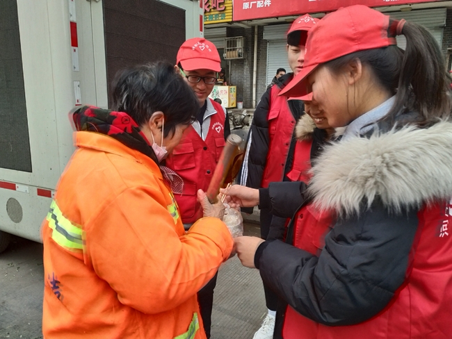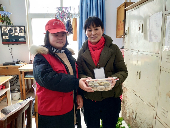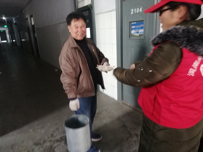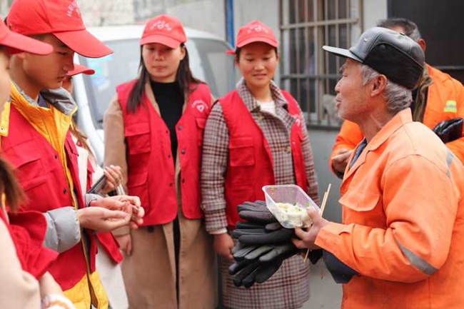 12月21日中午,我院各系团总支以及志愿者大队的师生们,将亲手包好的饺子送给学院后勤服务保障工作第一线的宿管阿姨、保洁、保安以及快递揽收处的工作人员。