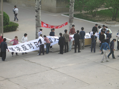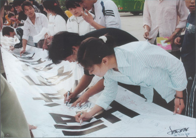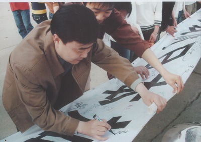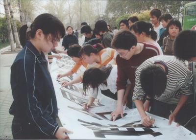 广大师生签名反对日本“入常” 来源:林苑文学社 发布时间:2005-04-11 14:55:49 浏览次数: 次 【字体:小 大】 4月7日下午4:30分,在学院办公楼前西侧拉起一条长7米,宽1.2米的白色条幅,同学们立刻被“坚决反对日本成为联合国常任理事国”十几个黑色大字吸引住,他们纷纷上前签名表达心声。 这是由林苑文学社自发组织的一次签名活动。踊跃签名的师生络绎不绝,个个热情高涨,横幅正反两面很快就密密麻麻写满了姓名。 一名返校的68级毕业生碰巧遇到,仔细观看了横幅后也主动在横幅上签下姓名。条幅很快就被签满,截至下午活动结束时,签名人数已过千。 分享到: 【打印正文】