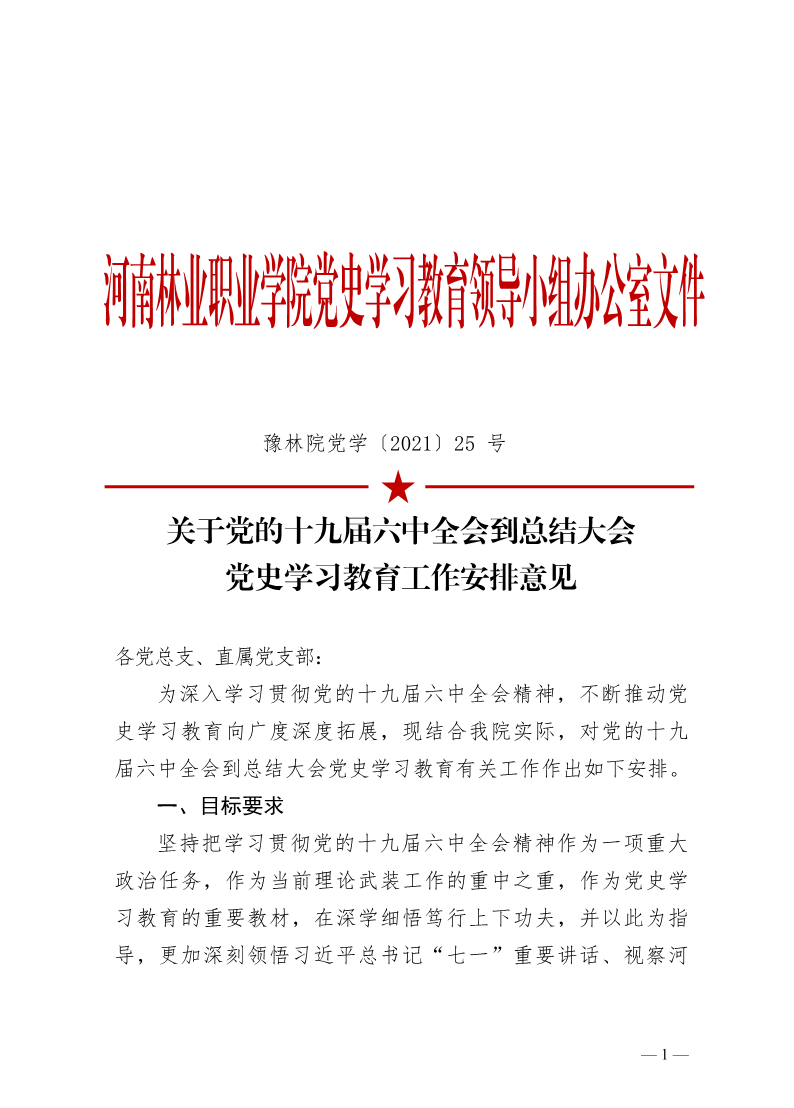 关于党的十九届六中全会到总结大会党史学习教育工作安排意见 豫林院党学【2021】25号 来源:党办 发布时间:2021-12-07 17:12:00 浏览次数: 次 【字体:小 大】 分享到: 【打印正文】