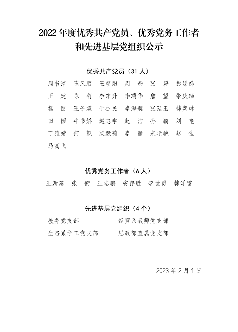 2022年度优秀共产党员、优秀党务工作者和先进基层党组织公示
