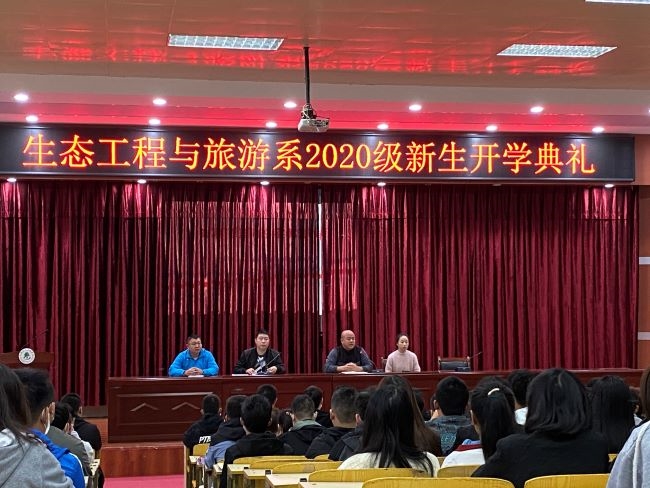 2020年10月12日上午10点,生态工程与旅游系在东阶梯教室召开开学典礼,228名2020级新生齐聚一堂,青春的面孔上洋溢着朝气,满怀期待迎接新的学习生涯。