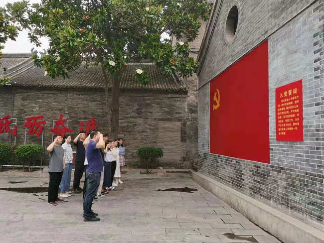 八路军驻洛办事处纪念馆位于洛阳市老城区南关贴廓巷,是为了纪念八路军驻洛阳办事处而以其旧址为依托成立的一座革命纪念馆,简称“洛八办”。在讲解员的引导下,全体党员依次参观了纪念馆各个展厅,感受中国共产党走过的艰苦卓绝的光辉历程,并在洛八办内的宣誓墙下,在鲜艳的党旗前,庄严的举起右手,重温入党誓词。