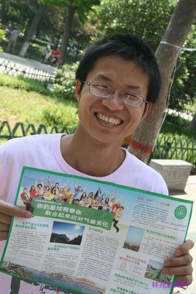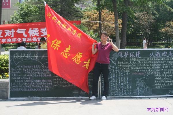 上午8:30,我校环境专业学生组成的环保志愿者50余人在老师的带领下, 带着制作的宣传展板,参加了在王城广场举行的“2009年洛阳环保世纪行启动仪式”,随后积极向市民发放环保宣传材料。