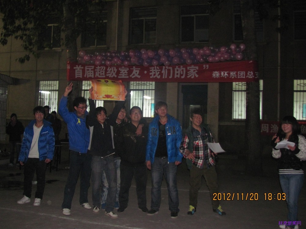 为庆贺河南科技大学林业职业学院第六届社团文化周暨第十六届校园文化节,森环系团总支于2012年11月20日下午4:30在院广场举办了《超级室友,我们的家》的活动。出席本次活动的嘉宾有森环系团总支书记赵迪老师,森环系老师殷瑞敬老师,艾丹老师,院团委办公室主任李超,经贸系团总支副书记李贝贝,信工系团总支副书记王涛等。