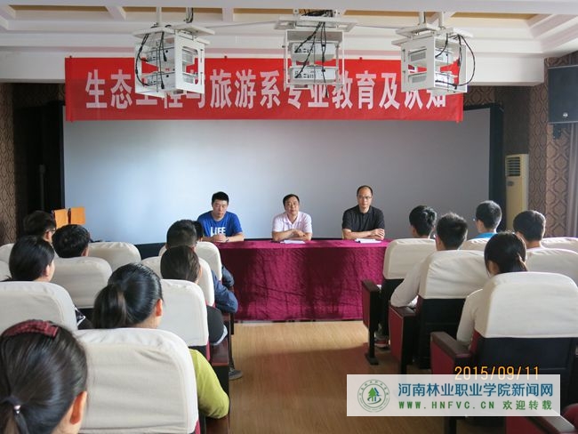 为给学生三年学习生活创造一个良好的开端,生态工程与旅游系对高职生态旅游和林业技术专业学生进行了为期四天的专业认知教育。在全系师生动员大会上,王建主任介绍了生态工程与旅游系情况及专业状况,对专业认知教育作了详细的安排。系先后邀请了两专业负责人、洛阳林科所高级工程师梁臣、洛阳旅行社协会会长姬卫东作专题讲座,分别到周山森林公园、洛阳市博物馆、钼都利豪酒店进行参观学习,并在校内实训基地进行了体验式实践。通过多种多样的专业认知,学生们对专业有了总体的认识,同时进一步巩固了对专业的学习兴趣。