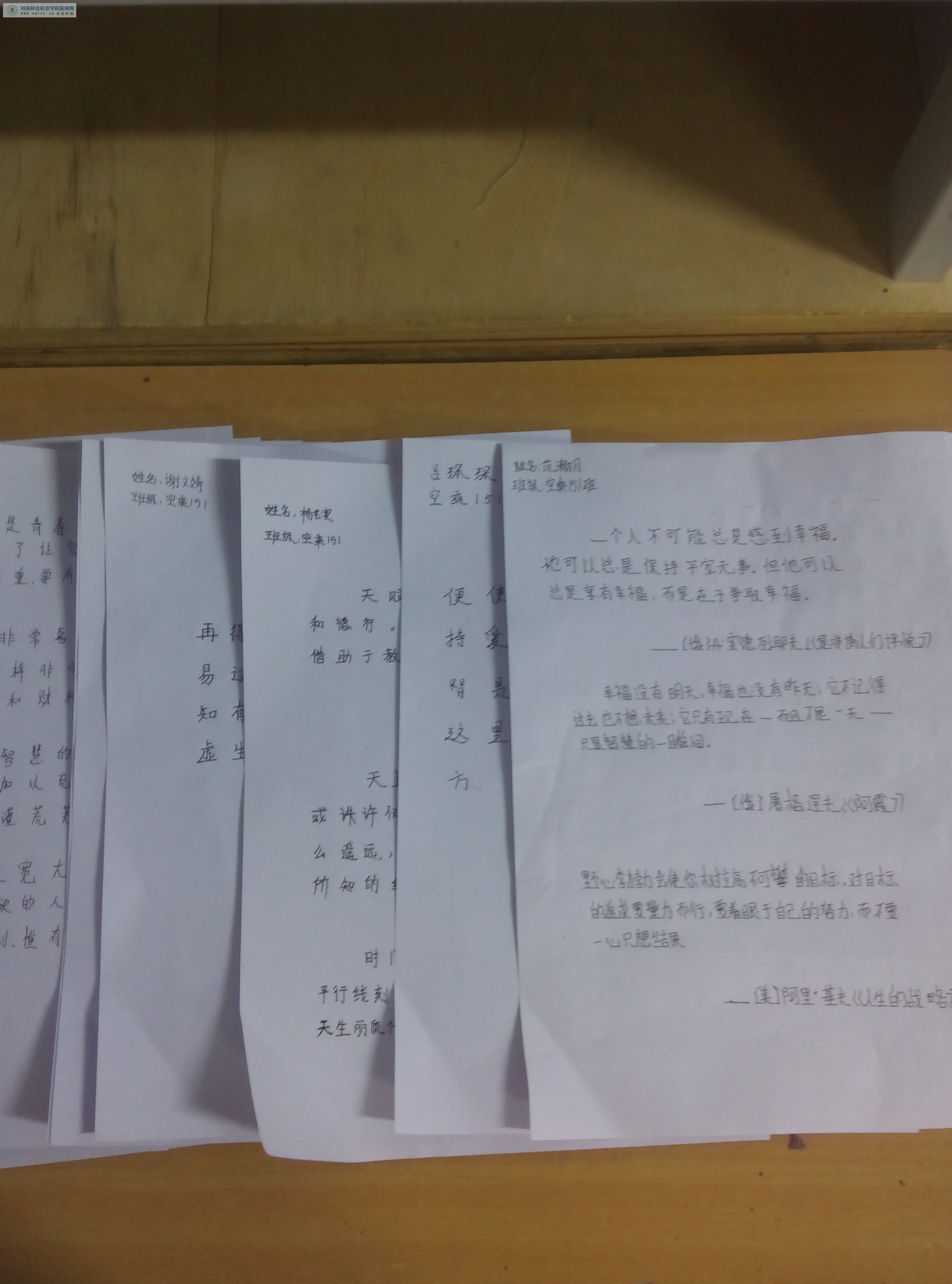 我院空中乘务专业举办钢笔字大赛 来源:生态系 发布时间:2015-10-26 09:57:25 浏览次数: 次 【字体:小 大】 为了丰富同学们的晚自习生活,强化书写基本功,提升文化内涵,我院空乘专业于2015年10月14号晚上利用晚自习时间举行了钢笔字大赛。空乘151班全体参与,同学们认真书写,争取把这一个月来练字的最好成果展示给大家。最后,陈梦星,吕琛琛、苏子怡和曹天灏同学在此次比赛中分获一等奖和二等奖,通过这次比赛丰富同学们的业余生活,并且大大激发了他们学习书法的热情。 分享到: 【打印正文】