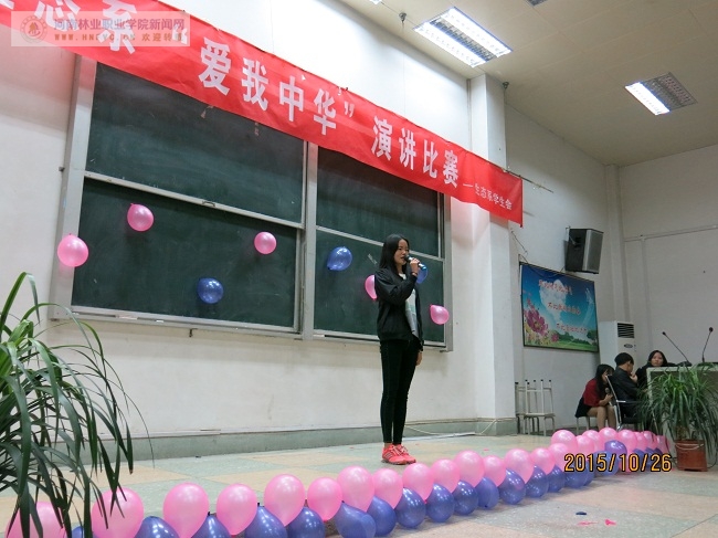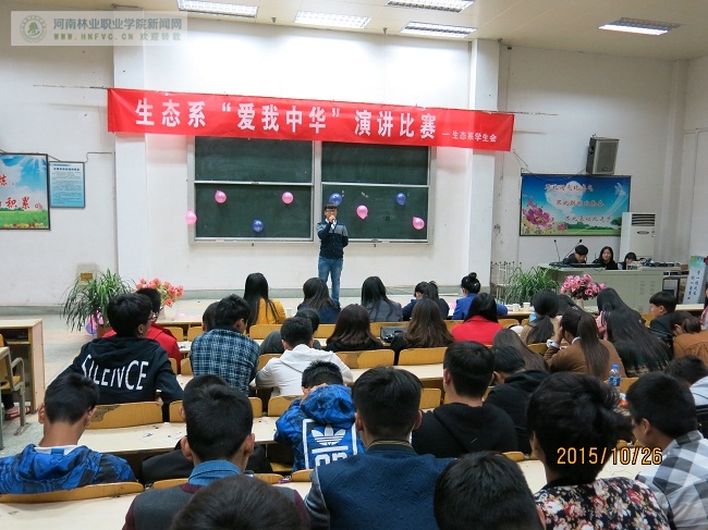 2015年10月26日由生态系举办的“爱我中华”演讲比赛在西阶梯拉开帷幕。本次大赛由系学生会举办,邀请了我系的孟媛老师以及若干学生干部来担次大赛评委。