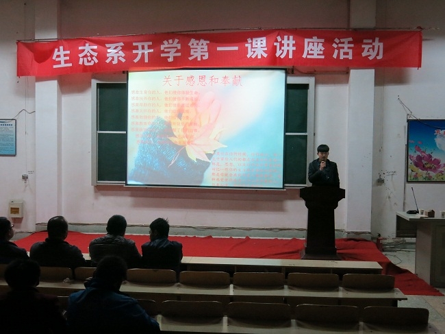 2017年3月23日晚七点半我系学生会在西阶梯如期举行“开学第一课”讲座活动,生态系全体同学准时到场参加。本次活动还邀请了李兴平、赵迪、孙柯老师出席。