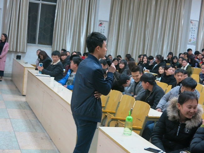首先,主持人胡良栋首先由一个田忌赛马的故事,吸引了全体观众的兴趣,并就此故事讲述了身为大学生的我们应该具备:学会变通,学会分配,学会管理时间,以及感恩和守规矩等品质,在中场穿插了互动环节,同学们积极参与,充分活跃了气氛,在活动结束之前,李兴平老师发言点评,指出了活动的不足,以及改进意见,希望我们的活动越办越好。