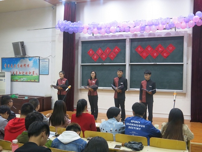 在党的十九大顺利召开之后,为歌颂党的伟大成就,增强同学们爱党爱国之情,2017年11月9日晚7:30,生态系团总支于我院西阶梯教室成功举办了“青春喜迎十九大,爱国奋进我先行”的诗歌朗诵比赛初赛。生态系若干老师出席本次活动。