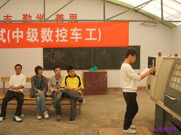4月25日,我校基础部07级数控专业22名学生参加了“中级数控车工”国家职业技能鉴定考试。该技能鉴定考试有理论考试和操作技能考核两部分,分别在25日上、下午进行。洛阳市教育局推行职业资格证书工作领导小组办公室成员、成人教研室教研员刘翠红、高中旺同志来我校巡考。