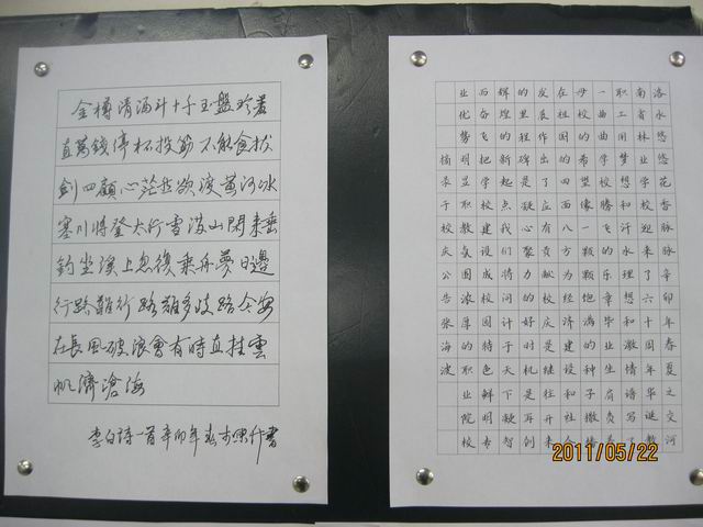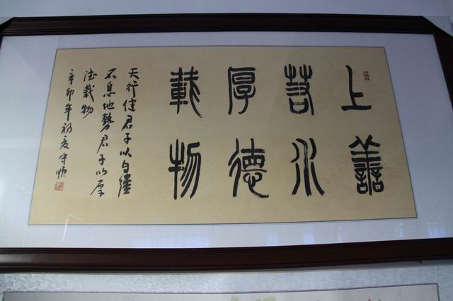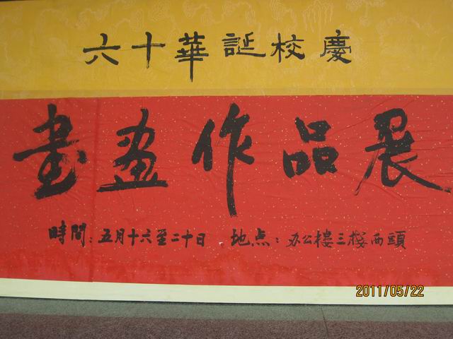 为给校庆60周年献礼,弘扬书画艺术、营造校园文化氛围、陶冶大家的艺术情操、展现我校教职工和广大学子书画水平,由基础部主办、历时两个月认真筹备并精心挑选的60幅书画作品在校庆期间隆重亮相并获得了广大教工、各级领导和历届校友的认可和赞誉,参观者也纷纷在参观留言薄上题辞并祝贺学校生日。