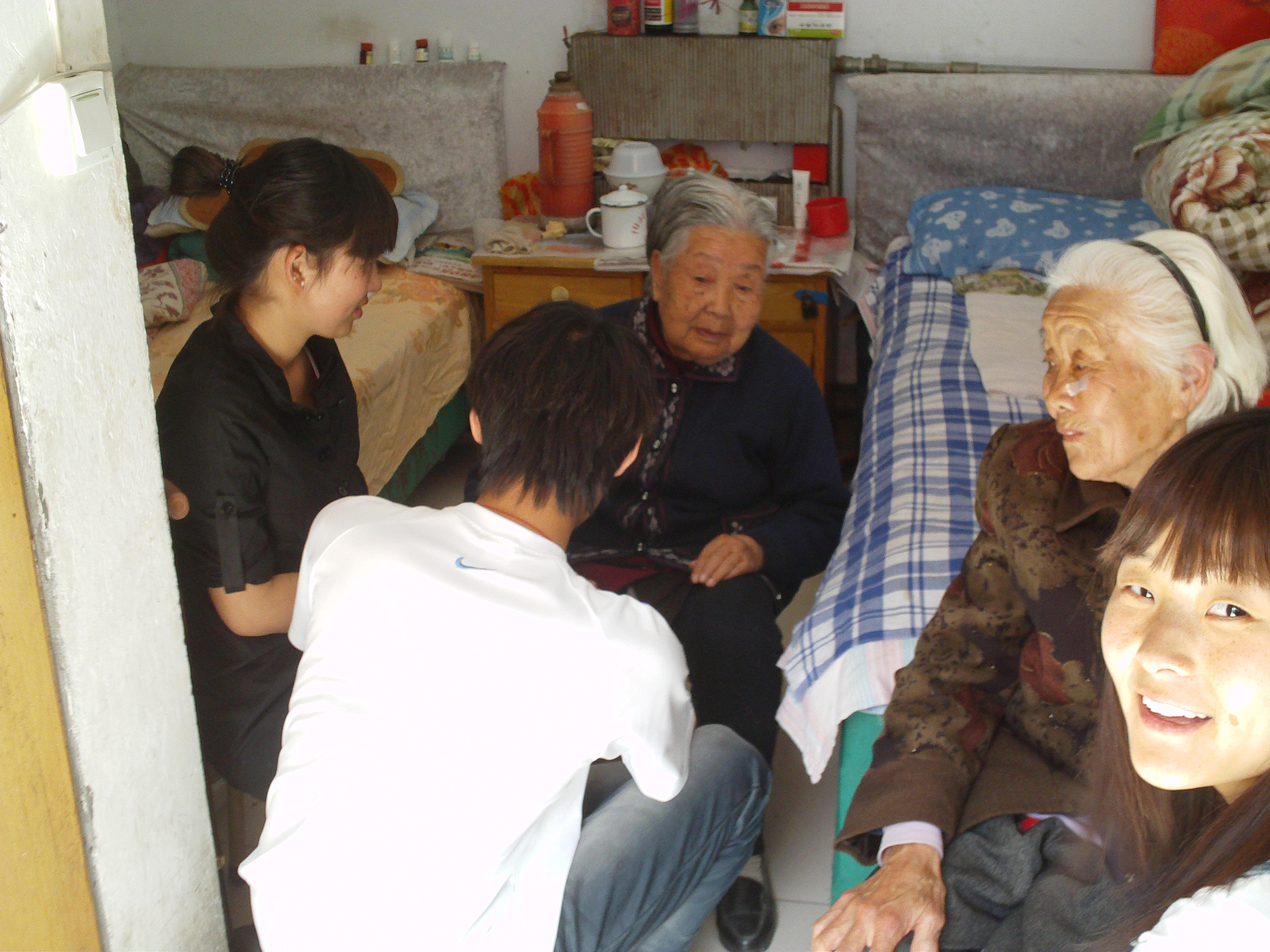 学习雷锋从关爱老人做起。4月15日中午,同学们怀着无比兴奋的心情走进老年公寓,一切都是那样的安祥、恬静。首先我们开始打扫卫生。我们分成两组,一组人拿起抹布擦拭门窗和玻璃,另一组人开始洗刷门帘。经过大家的积极参与,一段时间后老年公寓看上去更加的恬静,更加的明净、舒适。打扫工作一结束,同学们变迫不及待的去慰问老人,陪老人说话,听他们讲述他们的故事,他们的经历。老人们看到我们听得很入神,他们的讲述也更加的慷慨激昂。有的同学给老人捶背,揉肩。为了永远记住这一时刻,我们便把老人组织到一块和他们合影留念。