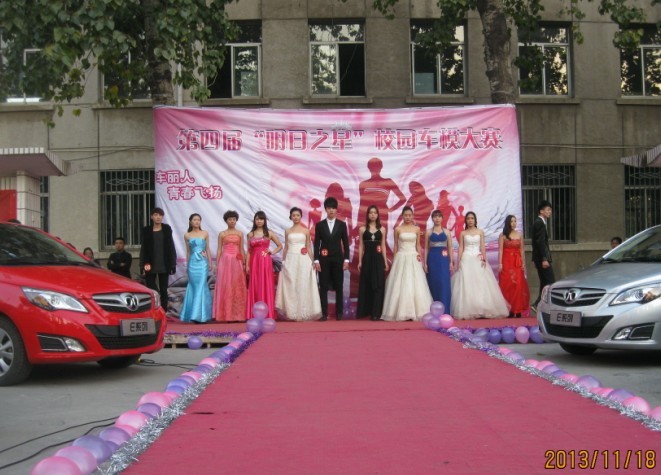 青春T台,我秀我风采。本次比赛有12位选手参加,分三个环节进行。首先登场的是晚礼服组的个人秀,华丽的礼服,自信的微笑,曼妙的身姿,尽显青春风采。帅气与美丽交迭出场的婚纱组以另一种姿态征服了在场所有的评委和观众。最后一个环节的个人才艺表演把本场比赛推向高潮,歌曲演唱、小提琴演奏,街舞表演使现场掌声不断。比赛在激烈的竞争中落下帷幕,最终,秦子怡、王铮铭、胡晓琪三位选手分别获得本届车模大赛的冠、亚、季军。