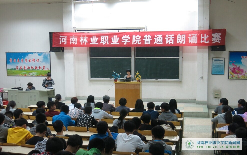 为了更好地推广普通话,丰富校园文化生活,培养同学们的高尚情操,培养大家的朗读、欣赏能力,2014年10月9日7:30,河南林业职业学院语言文字工作委员会在东阶梯教室举办了普通话朗诵比赛。